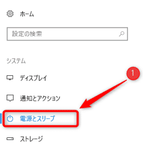 「システム」の設定画面の左メニューから「電源とスリープ」を選択します。