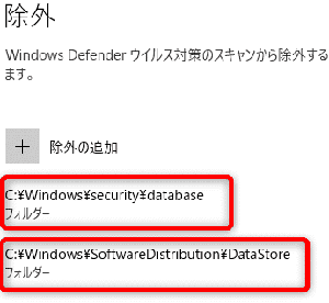 除外の対象は、ファイルやフォルダ以外にも指定できますが、今回は使用しません。